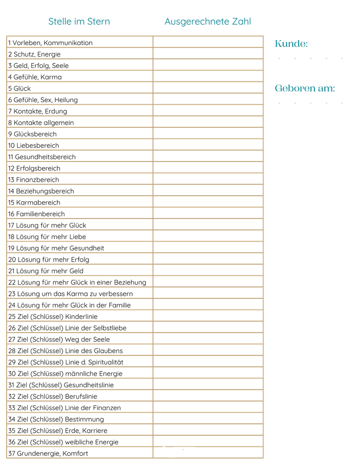 Die numerologische Persönlichkeitsanalyse mit dem Magischen Stern bietet damit eine fundierte Grundlage für Selbstreflexion, persönliche Orientierung und bewusste Lebensgestaltung.